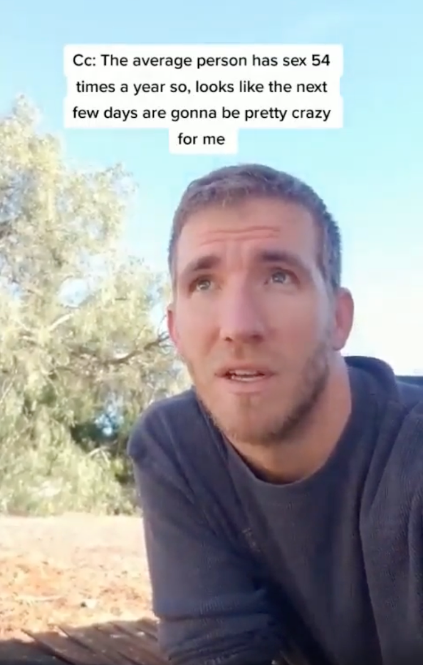 “The average person has sex 54 times a year or so, looks like the next few days are gonna be pretty crazy for me.”